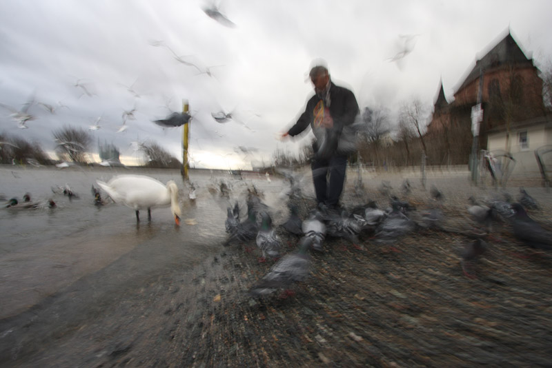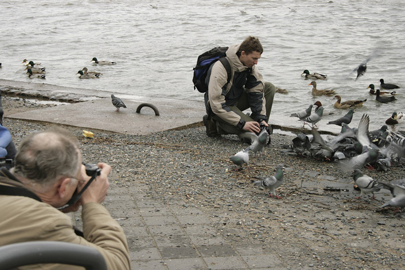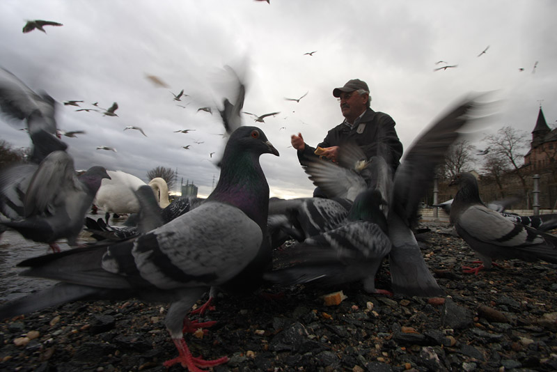 дрожащей рукой долго уговаривали голубей "быть человеком" и слушаться