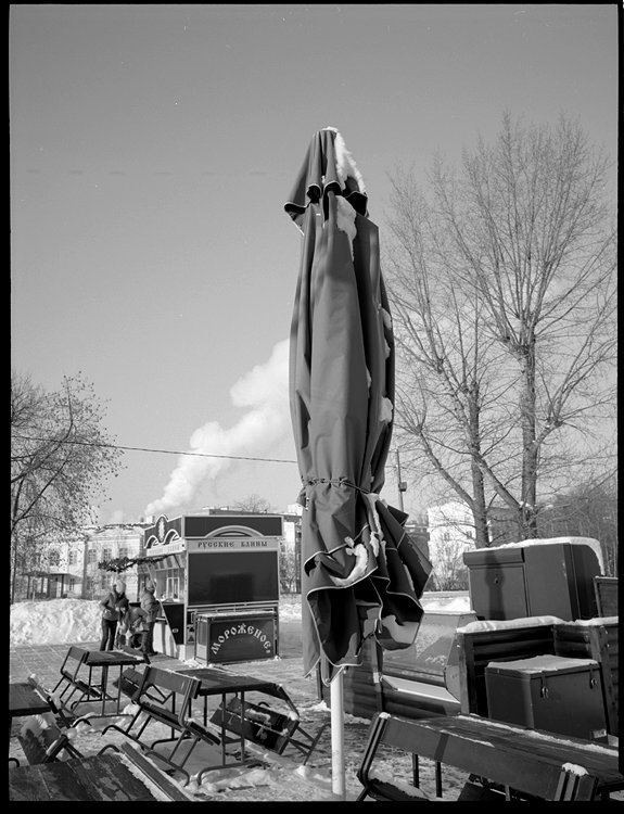 Параллельно снимал на узкую камеру, тоже на acros 100, но старый - просроченный на год. То есть, эмульсия имеет другой номер.