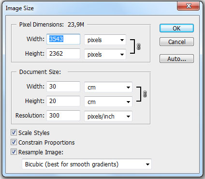 4. Ресайз -> 20x30@300 (Image-Image Size) см. миниатюру 1 следующего письма