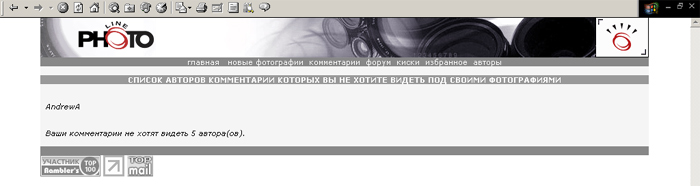 Андрей, прости, что выношу из лички на всеобщее обозрение. Просто в личке некуда прикрепить изображение. По твоей просьбе провёл эксперимент - забанил тебя, а затем сделал скриншот странички "Не жду комментарии". По-моему, админ всё-таки прав. Взгляни на снимок экрана - выходит, что список забаненных действительно главенствует.