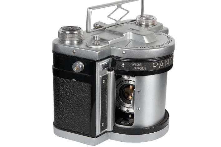 Панорамный фотоаппарат, размер кадра, 6х12 см, на 120 тип фотопленки. Очень редкий. Уникальный прецизионный фотоаппарат, для изготовления которого использовались патенты пяти стран: США, Германии, Японии, Швейцарии, Швеции.