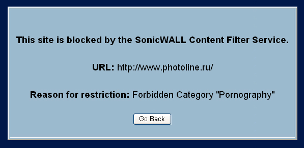 Дима Винокур писал(а): Часто бываю в аэропортах, в основном Северной Америки - в ожидании посадки обычно захожу в интернет, смотрю Фотолайн. Сегодня в аэропорту города Charlotte NC впервые столкнулся с таким препятствием. Для нечитающих переведу: "Этот сайт блокирован... Причина: запретная категория Порнография". Что занятно, другие фотосайты, которые пробовал, открылись без проблем.
