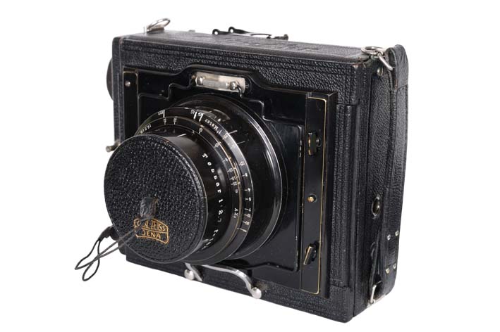 Антикварная немецкая камера с баснословными характеристиками для того времени. Формат: 9х12 см. Зеркальная камера - трансформер. Редкий прекрасный объектив, Tessar 1:2,7 f=16,5 cm. Камера представляет собой венец инженерной мысли конструкторов фирмы Zeiss. У камеры шторный фокальный затвор, как у современных камер. Диапазон выдержек: Т, В, 1 - 1/2000. Фокусировка при помощи многозаходной винтовой резьбы, минимальная дистанция фокусировки: 1,22 см. Оптика чистая и прозрачная. На открытой диафрагме лёгкий софт, уменьшающийся по мере диафрагмирования. Уже даже на матовом стекле видно пластичное живое изображение с прекрасной цветопередачей. Объектив - находка для портретистов: красивое бокэ. Камера имеет возможность смены объективов. Шифт вертикальный/горизонтальный со сменными объективами. Установленный объектив не позволяет шифтовать из-за больших размеров. Есть возможность работы по матовому стеклу. Особого внимания заслуживает узел трансформации камеры: в сложенном виде она уменьшается в 3 раза. Шахта прячется вовнутрь меха и все это происходит автоматически, при нажатии одной кнопки.