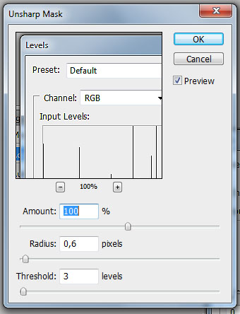 5. Аншарп с параметрами 100%,0.6, 3 (Filter-Sharpen-Unsharp Mask) см. миниатюру 2 следующего письма