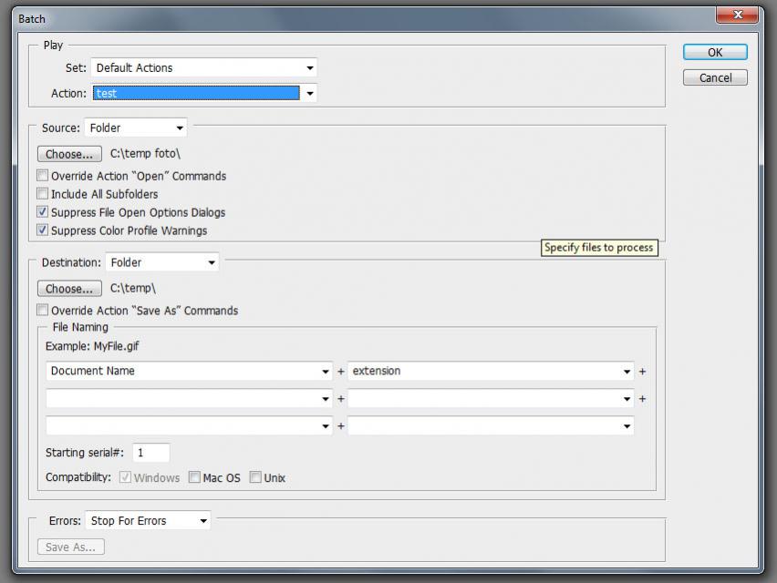 Что мы измеряем? Время между началом и окончанием пакетного преобразования. Воспользуйтесь простым секундомером. Чем меньше время - тем быстрее ваш компьютер. Для однообразия измерения окно с фотошопом во время теста мы не закрываем а иные программы (в т.ч. резидентные антивирусы, icq, skype и пр.) должны быть отключены.