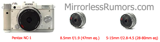 http://www.mirrorlessrumors.com/hot-fir ... ss-system/Ресурс Mirrorless Rumors опубликовал изображения, на которых, как утверждается, представлена новая беззеркальная система, разрабатываемая в настоящее время компанией Pentax. Если верить приводимой информации, в состав новой системы должна войти фотокамера Pentax NC-1 плюс, по меньшей мере, два объектива – модель с фиксированным фокусным расстоянием 8.5mm f/1.9 и зум-объектив 5-15mm f/2.8-4.5. Таким образом, линейка производителей беззеркальных камер со сменным объективом уже в скором времени может пополниться еще одним уважаемым брендом.