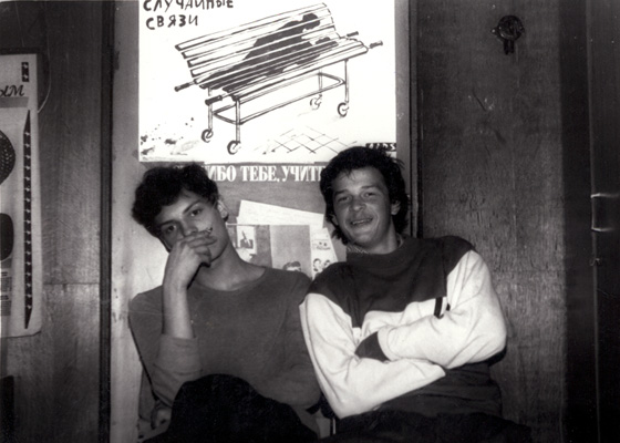 Фотоаппарат на столе на замедленном спуске, левый мальчик это я...