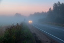 Вечер на озере Красилово (Алтай). Солнце должно вот-вот сесть. Вдали собирается туман.