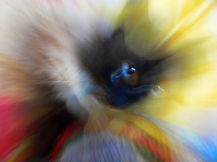 14. Всё ещё проще! сажаешь кота в не очень светлом помещении, ставишь длинную выдержку и, в момент нажатия кнопочки, падаешь на этого самого кота :))))))))