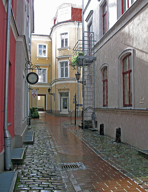 Капли на левой стене интересны!Улочка очень уютная...Интересно,живут здесь люди или только офисы ?