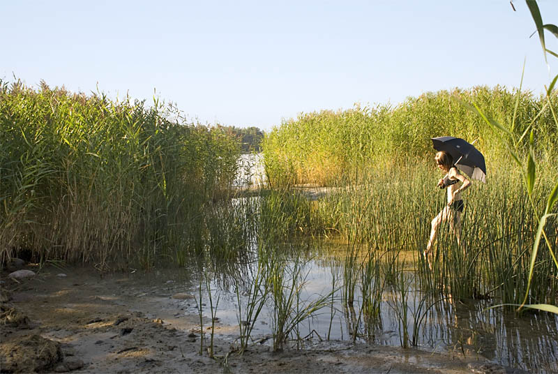 в странном месте она бродит :-))) а зонтик - от лягушек? ;-))