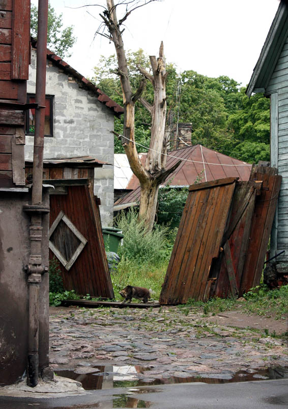 Немаленький проход в заборе котичек себе организовал:)