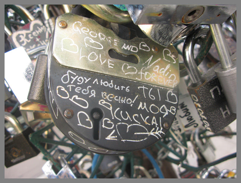 В Москве , традиция. Молодожены оставляют в знак "крепкой" любви