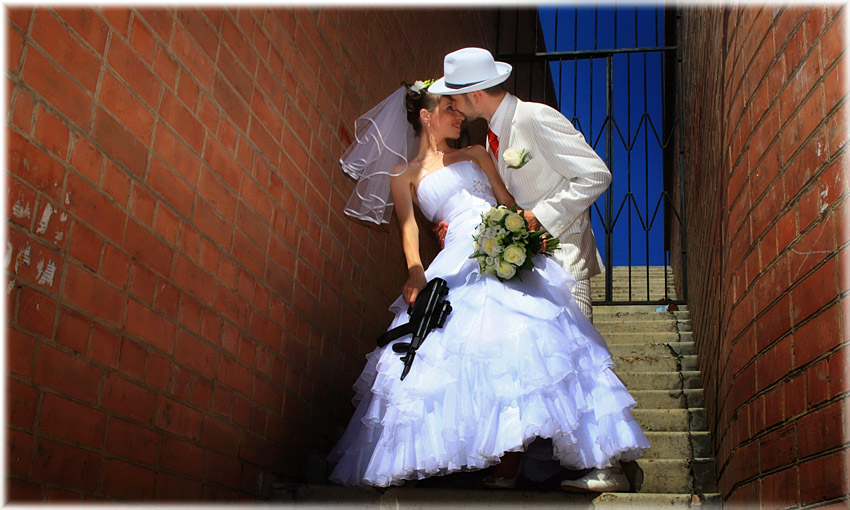 Прямо реклама фильма! Голливуд отдыхает, Коламбия Пикчерс не представляет!!! А молодожёны, наверное, артисты местного театра? :)))