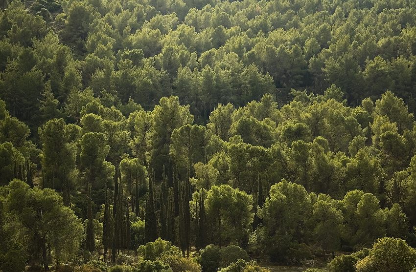 Склон горы Фавор. Кроме кипарисов другой растительности не знаю. Может Володя Кривицкий скажет.