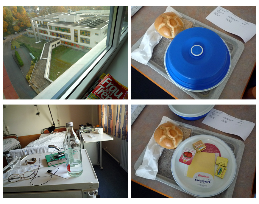 привет ,друзья, буду отчитываться о местной больнице .Это тоже было интересно :)) И как выяснилось в течение недели пребывания там , мыло ,духи ,стиральные порошки и т.п. надо будет выкинуть из дома :)) На фото в ЛВУ -вид из окна палаты , НЛУ-вид спросония из-под тумбочки, ВПУ завтрак в закрытом состоянии, НПУ -завтрак ,кусочечек колбаски ,сыра ,творог 1 ст. л.,джем 1 ст.л.,булочка ,масло,кофе или чай. Ужин точно такой .