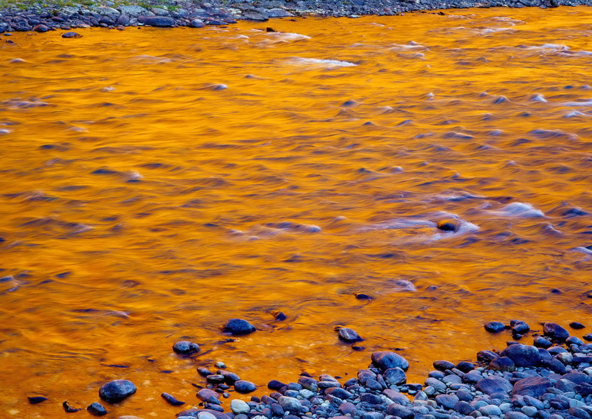 На другой стороне реки скала, освещённая закатным Солнцем.