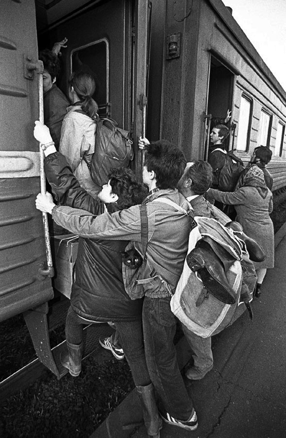 Это, между прочим снято 1 мая. Нормальный народ с флагами выражает международную солидарность. Автор в тот день на дачу не поехал, а на перроне выполнял редакционное задание.