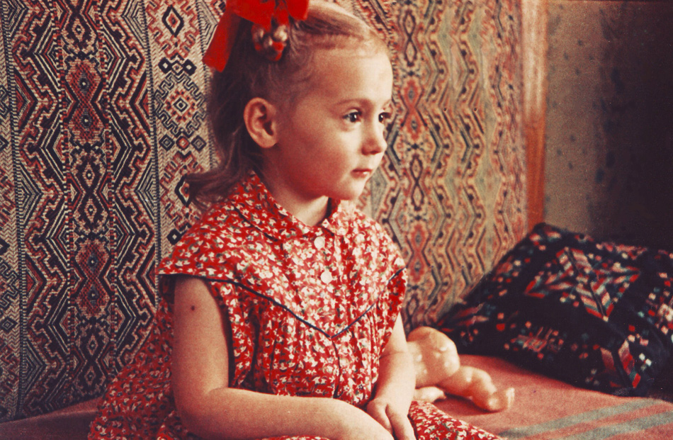 Мой первый цветной автопортрет, фотографировал папа первым семейным фотоаппаратом ФЭД. Год съёмки 1959. Мне 5 лет. Отечественная негативная плёнка. Папа сам проявлял плёнку, сам готовил все необходимые растворы для проявки и печати, сам печатал. Плёнка и сейчас цела. А фотоаппаратом мне разрешили пользоваться позже. Я снимала этим ФЭДом с 1968 по 1975 год, то есть с 8 класса до окончания института.