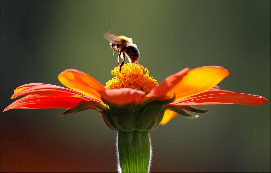 Шмель на цинии.