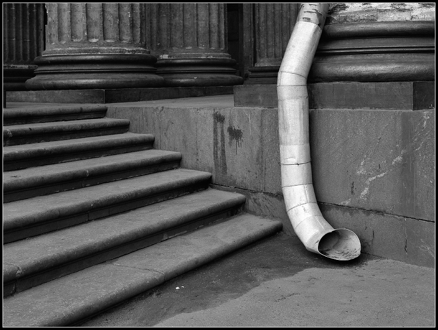 а труба мне напомнила подслушивающее инквизиторское ухо из кукольного спектакля БТК "Любовь, любовь..." - оно появлялось внезапно рядом с беседующими людьми, и надо было в него незамедлительно сказать: "Ангелы - посланники Божии на земле!" и тогда ухо кивало и исчезало :)