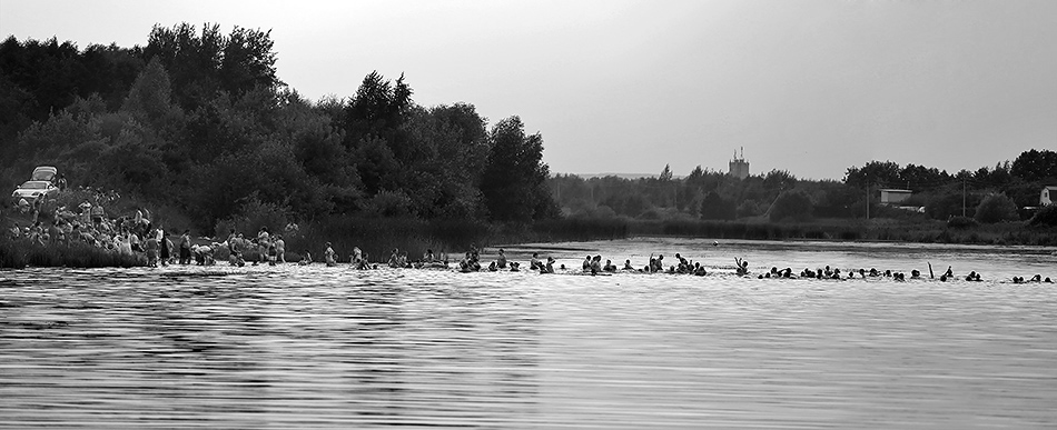 брод нашли и переправляются на другой берег без моста? часом, не Тутаев?