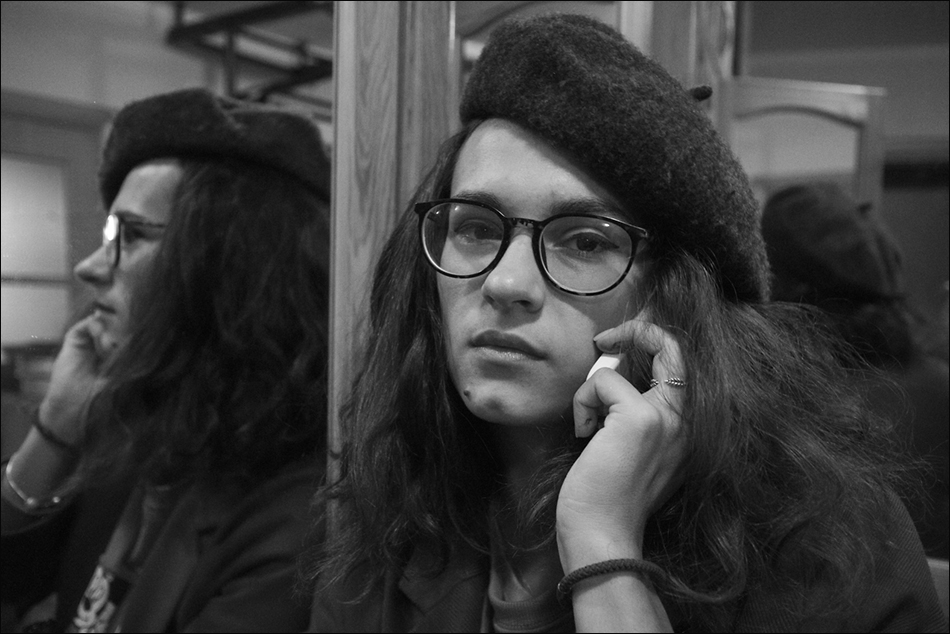 /14/ Мы с Верой собирались выйти из дома и тут позвонили. Я вначале пытался фотографировать её телефоном, но быстро понял, что фигня. Сходил за Canon m6, там был объектив 22/2.0...