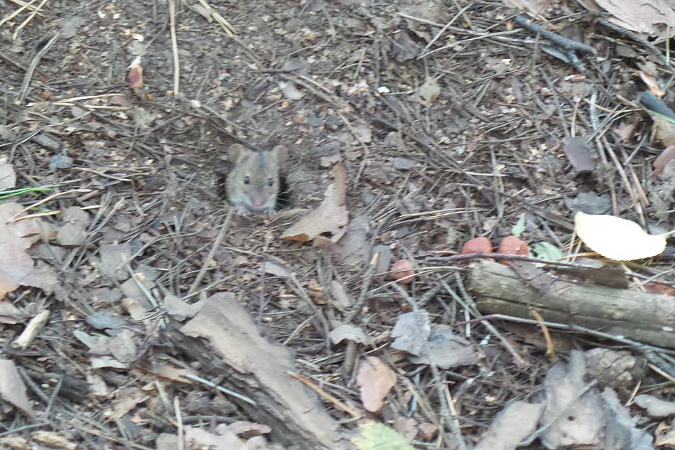 Бурундучку недавно исполнилось три года. Она все время забирает орехи на этом месте.