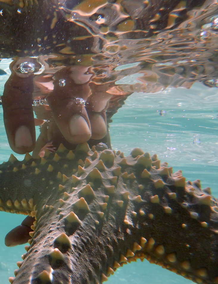 Морские звезды безопасны. Только один вид ядовит. Девочки его нашли и вытащили для фотосессии :) Чудом обошлось :)