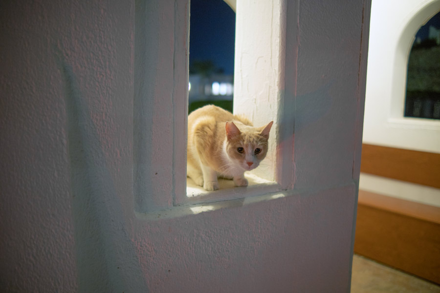 В отеле котиков тьма! Выпрашивают еду, пьют опресненную воду из бассейнов (что делать нельзя). Потому имеют болезненный вид.