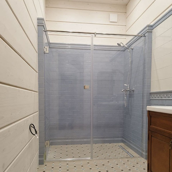 Стекло остаётся главным героем. Закалённое стекло толщиной 8–12 мм выдерживает удар в 7 раз сильнее обычного и при разрушении рассыпается на безопасные крошки. Прозрачное стекло даёт ощущение свободы, а матовое или тонированное добавляет приватности.