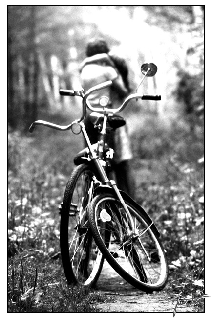 Отличная работа. Казалось бы, сопоставление достаточно очевидное. Вместе с тем, оно абсолютно точно раскрывает тему. Это обусловлено тщательным отбором деталей, выверенной композицией, тем, как руль одного из велосипедов повторяет линию руки девушки, правильно выбранной степенью размытости заднего плана. Кстати, на этом снимке можно видеть тот нечастый случай, когда смысловой акцент находится на заднем плане и в нерезкости. Такое построение кадра требует мастерства.