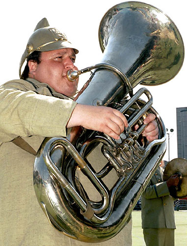Дядька под стать инструменту, и что примечательно ни разу не встречал несоответствия с такой трубой!