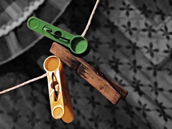 А с фоном очень просто... взяла его в лабколоре.. притащила и поставила вторым слоем сверху над цветным.. прорезала в нем дырки над прищепками и веревкой и все дела...