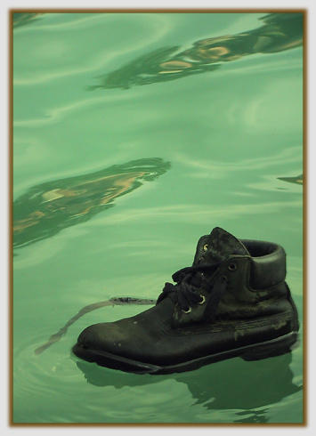 Как он там оказался, вот вопрос. Вода выглядит глубокой, шнурок уже начал тонуть, впрочем, это интересно, но не так важно. Большому кораблю - большое плавание. :))))