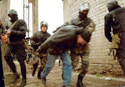 Снимают такое либо на митингах,либо на учениях спецотрядов.Мне кажется что лучше было бы если люди были резкими,а фон размытым.