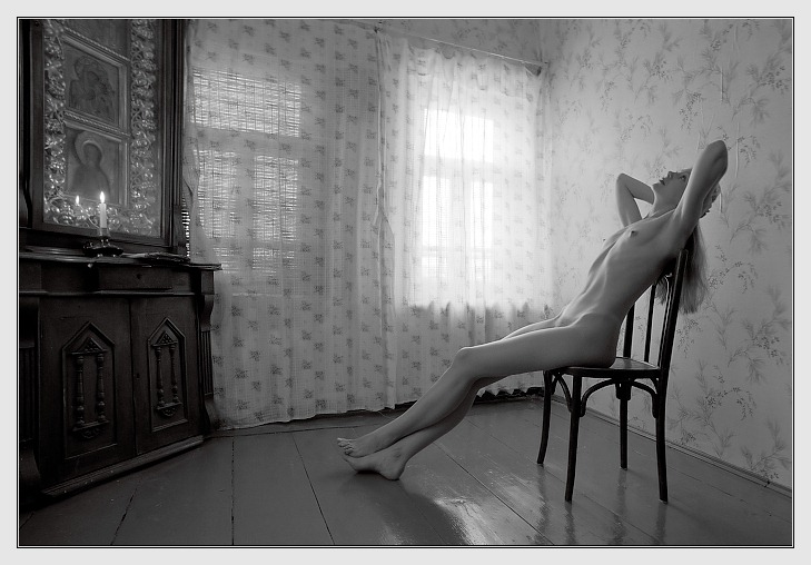 к 6 НЮ бывает не постановочным? чистый пол, религиозные фенички, обнаженная не вульгарная девушка, свет в окне, свеча. Из этого всего не рождается идея?