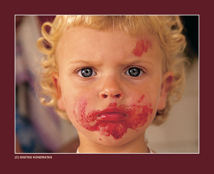 Порочный ангел получился... В чем это он? Не пойму - в помаде ли, в крови ли? :). Хорошо!