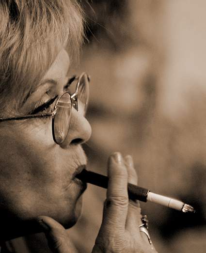 Очень классно и стильно. Смотрие,как она втягивает сигаретный дым!!!...весь характер в фотографии. Отлично!