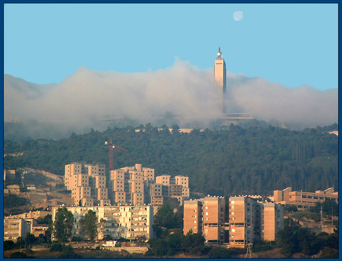 Самая высокая точка Хайфы - университет на вершине горы Кармель. Снимок сделан рано утром, Луна не успела спрятаться.