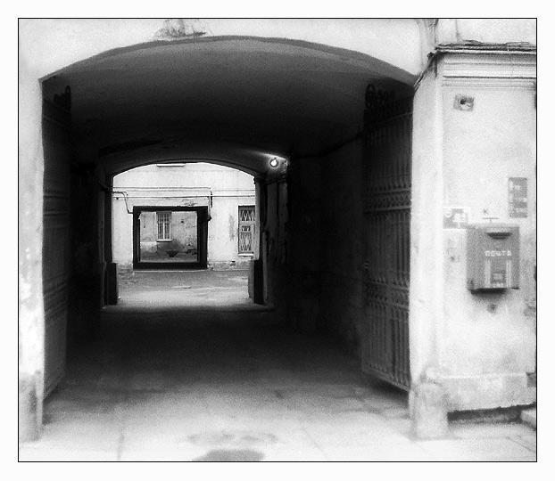 Лампочка, это наш центр. Точка отсчета, но пусть даже нерезкий почтовый ящик перетягивает взгляд от наших прямоугольников (будь они неладны, не люблю геометрию, пятна - форева! :-).