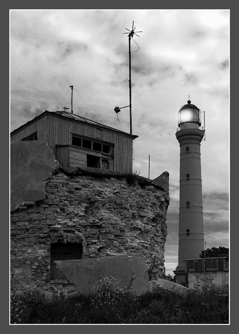 Строение доминирует над маяком. Я бы, наверное, сделал наоборот: чтобы маяк довлел над сарайчиком. Не факт, конечно, что было бы лучше. Рамка, на удивление, понравилась. Настроение тревожное, верно. А вообще - нравится :)
