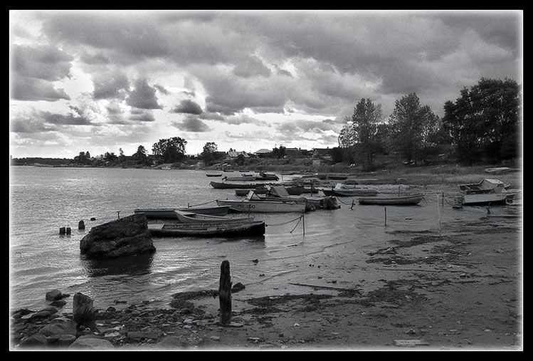 Состояние природы удачно передано, а вот лодок бы хватило 1-2 шт. А так они сливаются, взгляд блуждать в этом месиве начинает.