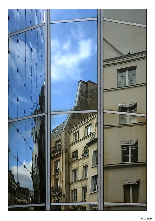 Старые здания Парижа отражаются в современной ,модерновой конструкции Форума Ле-Аль