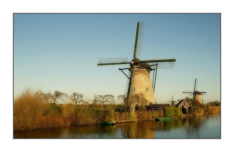 Ох, и я там была, мед-пиво пила, по усам текло, в рот не попало... Не Schiedam ли случайно? Или в том месте, где этих мельниц стаи? Кстати, голландцы вовсе не всегда муку или краску делали на этих мельницах, например, иногда ликер гнали. Цвета чудесные у фотографии, передает те оттенки слегка бурого, что есть у старых голландских художников. И еще это чувство повсеместно разлитой воды со слегка насыпанной сверху землей. Спокойствие... Может быть, стоило захватить чуть больше справа?