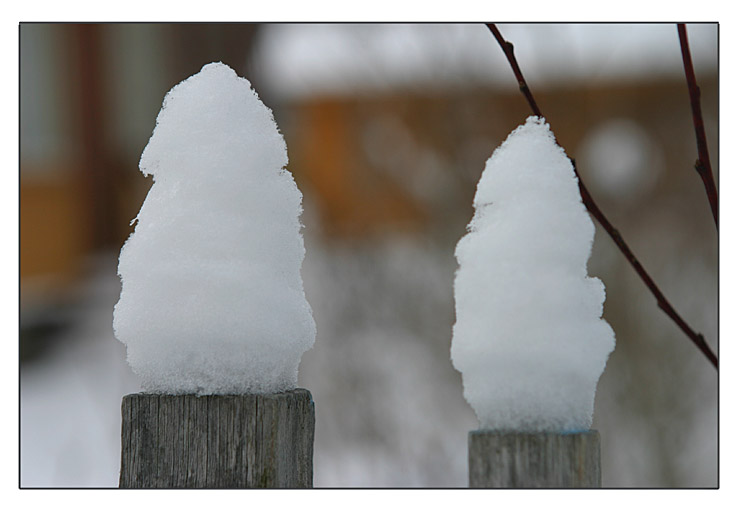 При другом освещении может быть и было бы интересно. А сейчас, на мой взгляд, снег слишком серый и невыразительный. А правый столб со снегом еще и нерезкий. Б/о