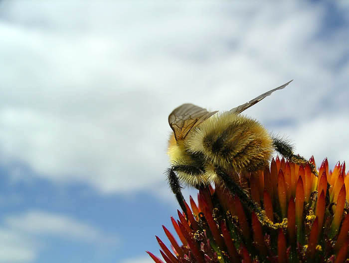 Слева чуток бы подрезать - многовато неба, нмв. Жаль, что ЛВУ такой скучно-облачный, пчелке облачко бы противопоставить. Сплошное ИМХО.