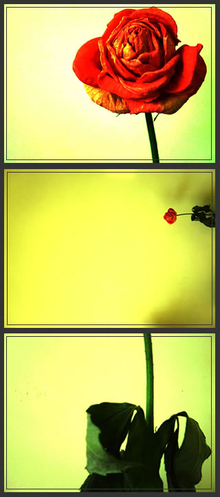 Расчленение розы :-) все-таки цвета уж больно резкие, и не стоило имхо резать в верхнем кадре розу рамкой...