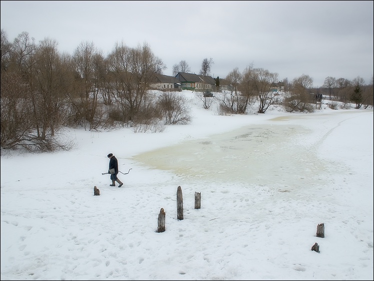 Проталинки пошли по реке - скоро ледоход, потому и не клюет.