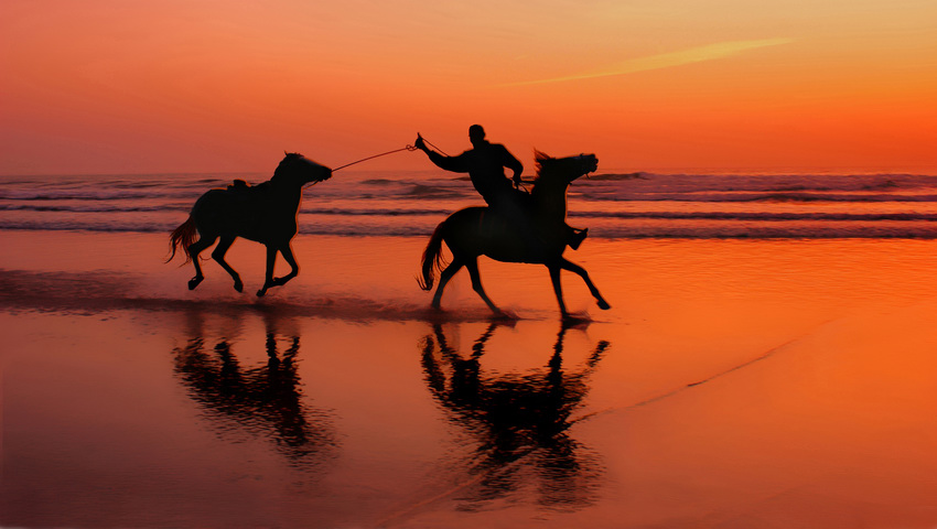 Цвет не очень. А в целом в фото есть некая динамика, которая привлекает к себе внимание. Очень хорошо прорисованы ложади и наездник. Но с другой стороны кажеться, что они как будто просто вставлены в это фото.